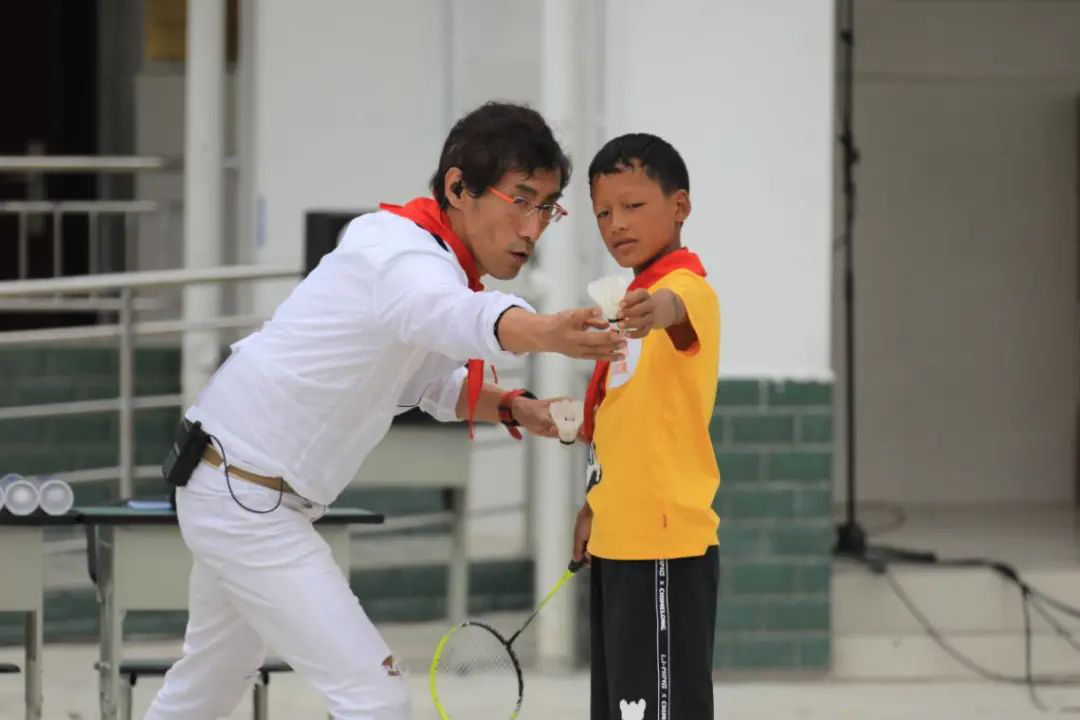 孩子們和電視上的“大朋友”們進行了羽毛球比拼。