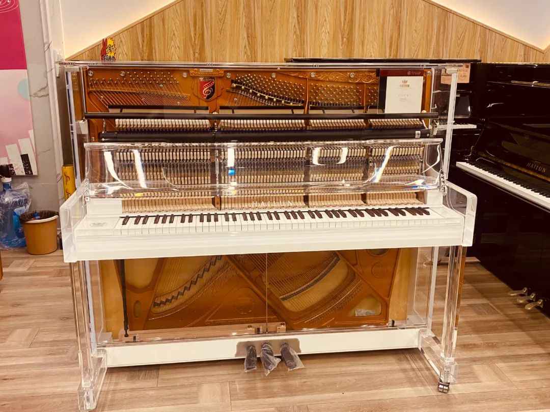 海倫鋼琴專賣店的V133CR水晶鋼琴依舊醒目而耀眼,高配置、高品質(zhì)、高顏值的一款水晶鋼琴,水晶透明外殼不只是一種設(shè)計,更是一種敢于把配置做工展示出來的自信。